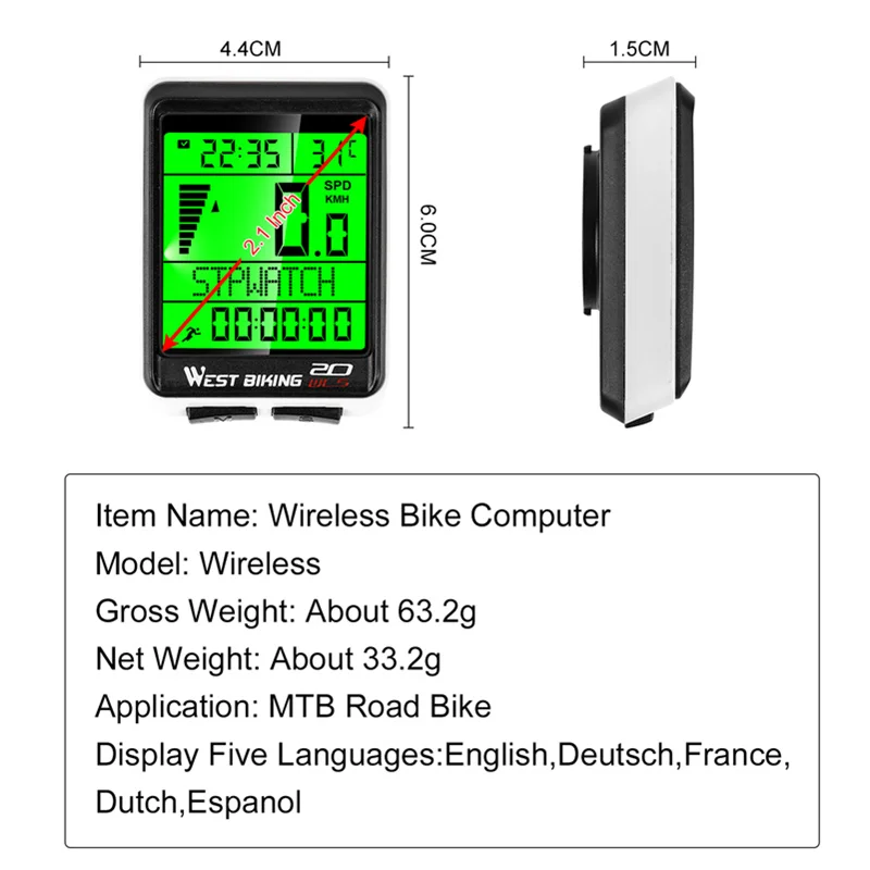 West Biking YP0702049 מאפיינים ומפרטים של מחשב אופניים אלחוטי